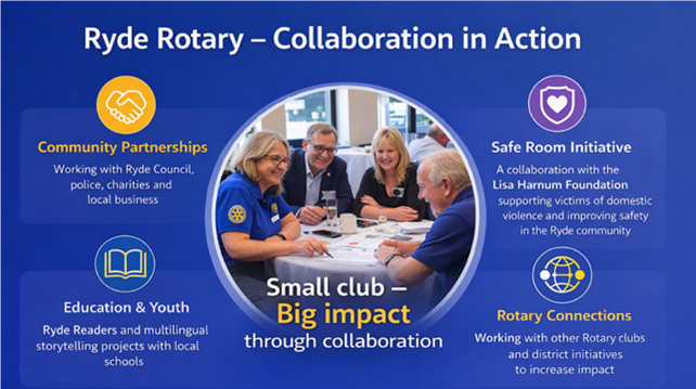 Rotary members believe that we share a responsibility to take action to improve our communities. Join us, so that we can make an even bigger impact in the area of Ryde and beyond.